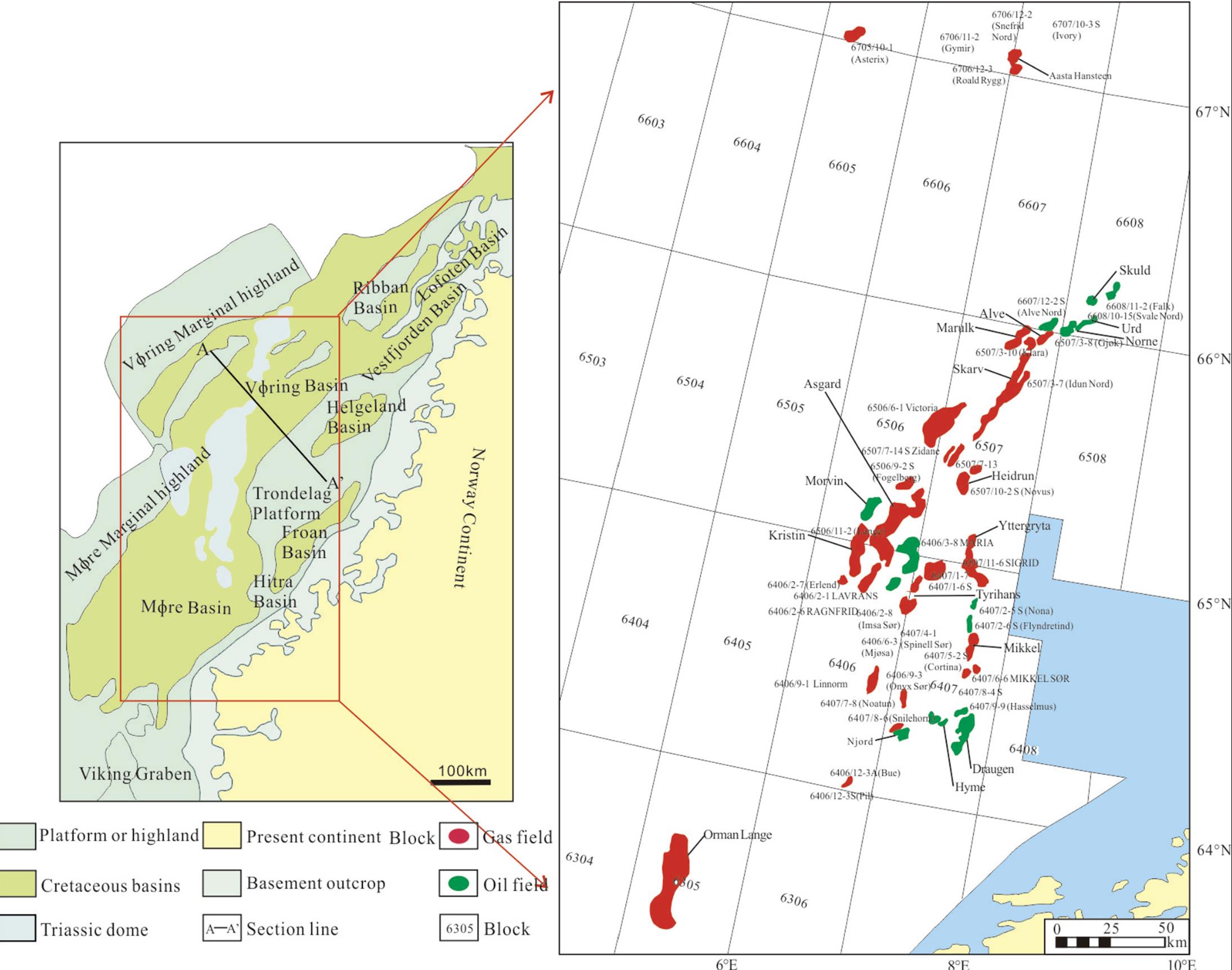 Since 1980, Norway has shifted its focus of oil/gas exploration to the shelf of Mid-Norway. So far, multiple oil and gas fields have been discovered in deepwater areas of the basin (Fig. 1, Table 1). According to the United States Geological Survey (USGS), there are more oil/gas fields to be discovered in the shelf of Mid-Norway, especially in poorly explored deepwater areas.