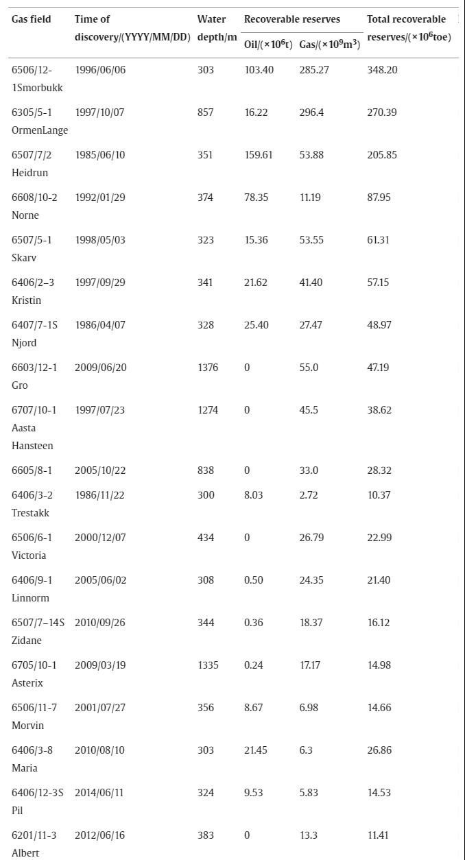 Table 1. Major deepwater oil and gas fields in the shelf of Mid-Norway