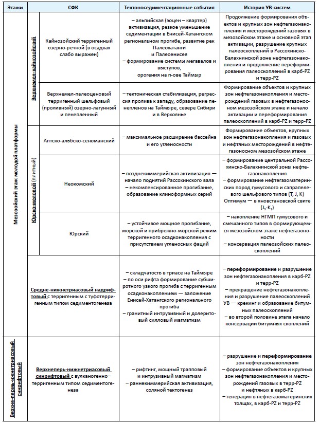 Табл.1. Структурно-формационные комплексы, тектоноседиментационные события и история нефтегазоносности в Енисей-Хатангской НГО