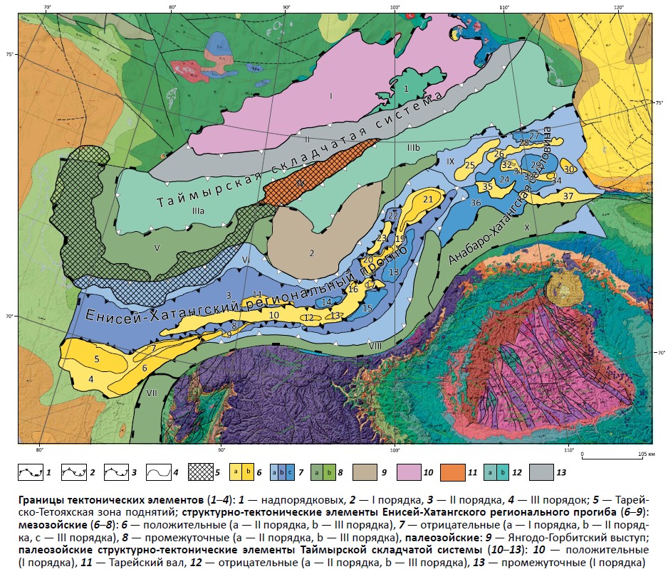 Рис.4. Структурно-тектоническая карта Енисей-Хатангского прогиба
