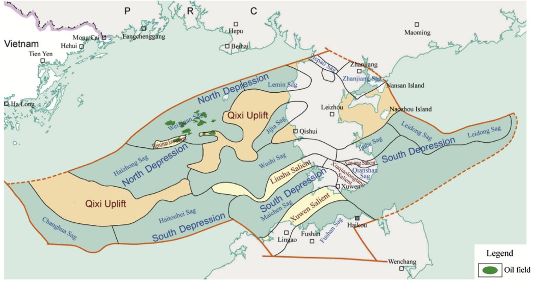 The exploration of the Beibu Gulf Basin began in the 1970s and bloomed after the 1980s. All oil fields discovered are multiple oil and gas reservoirs due to complex Paleogene fractures. So far, more than ten oil fields have been discovered in the basin with proved oil reserves of hundreds of millions of tons, and no independent gas reservoir with commercial value has been discovered yet, indicating that the basin is of an oil type.