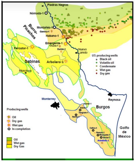 In 2012, due to the success of wells completed in the Eagle Ford shale in Texas, PEMEX made its evaluation of oil and gas resources in Mexican shales.