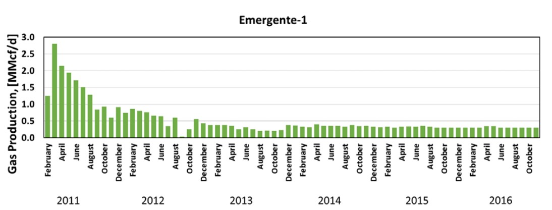 Figure 6. Production history of the Emergente-1 well (CNH, 2016).