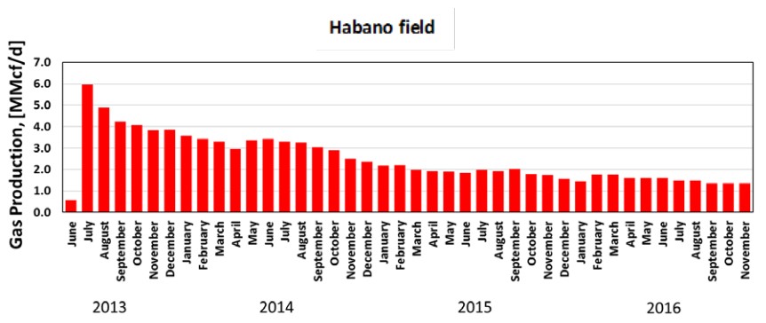 Figure 7. Production history of the Habano field (CNH, 2016).