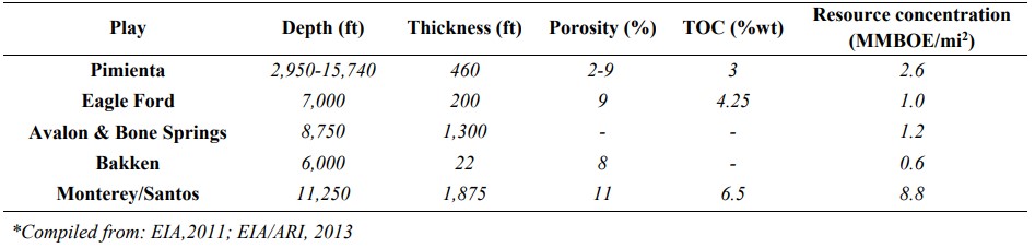 Table 1 Comparison of Shale Formations (from Granados Hernandez et. al, 2017).