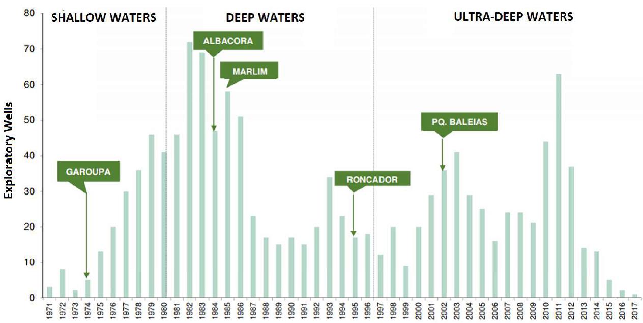 Figure 3. Campos Basin Exploratory History from 1971 to 2017. Source: Modified and Translated from ANP (2018).