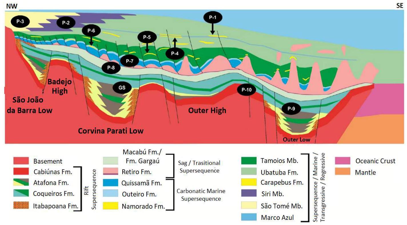 The Cenozoic sedimentary cover is represented by the Barreiras Formation (Miocene) and the quaternary coastal deposits near the mouths of rivers such as Paraíba do Sul River, however, as they are not of petrolific interest, these deposits will not be described in this paper.