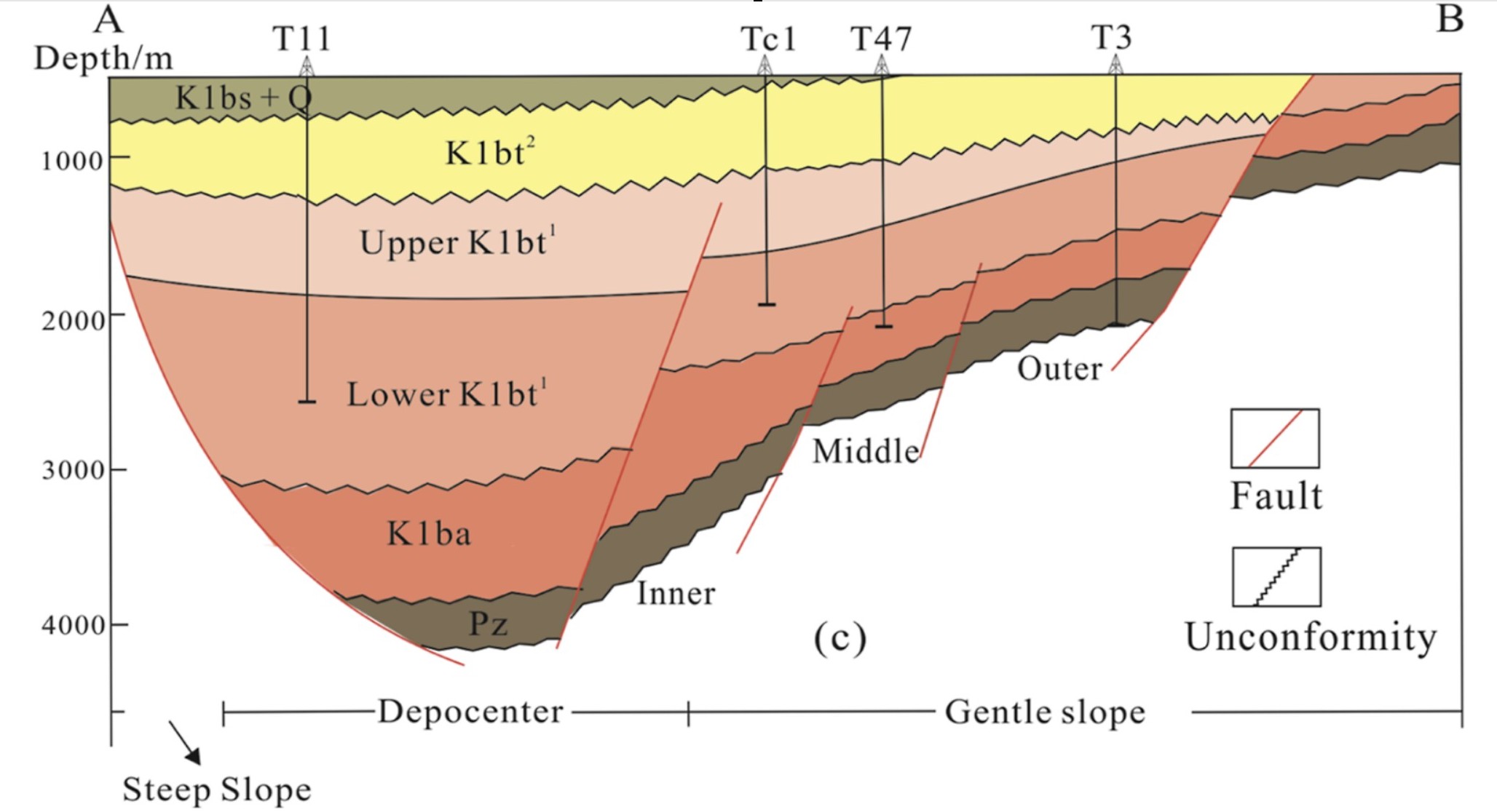 Figure 1. (c) geological section of the Wuliyasitai southern sub-sag.