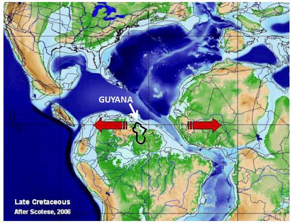 Fig. 1. Paleotectonic Map Showing the Location of Guyana and Plate Tectonics in the Late Cretaceous