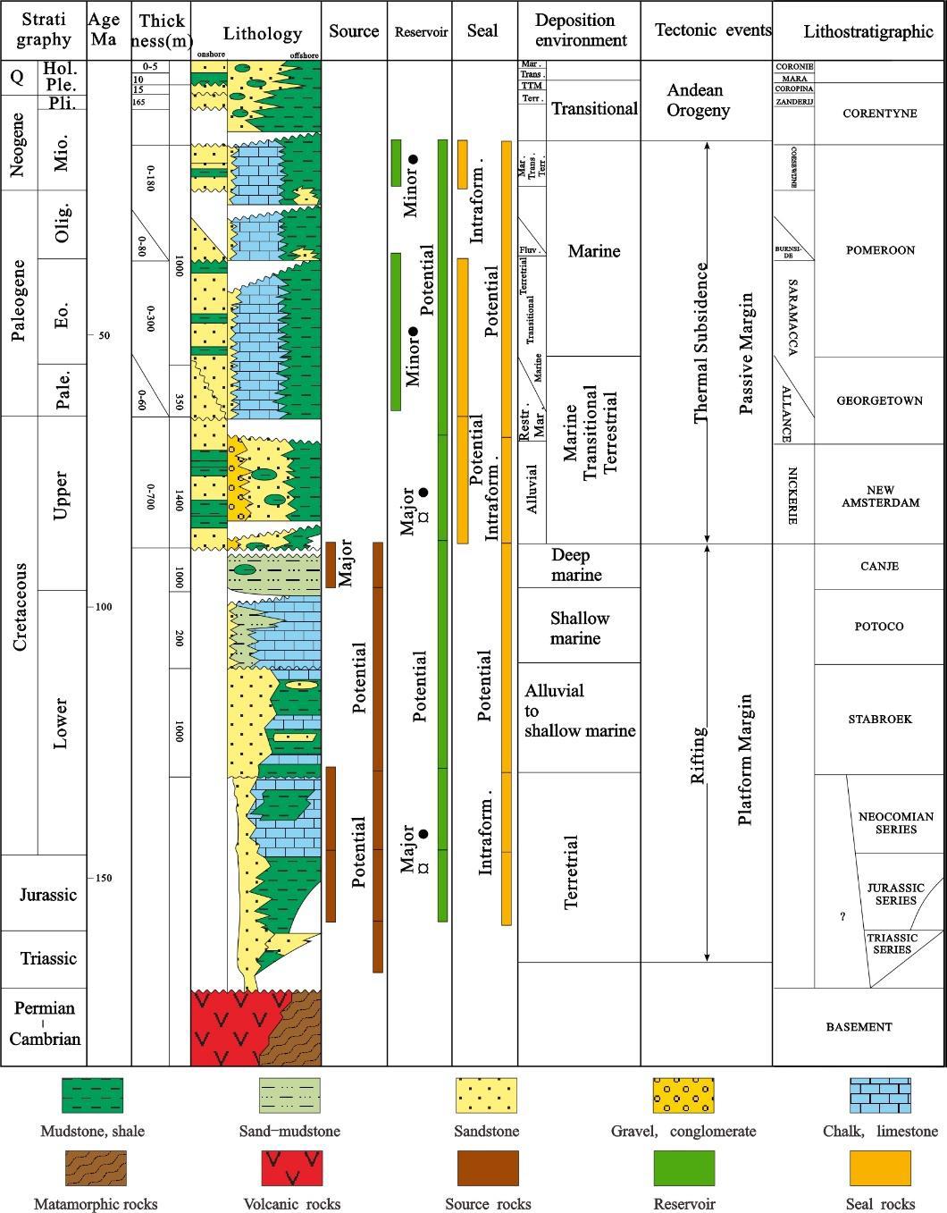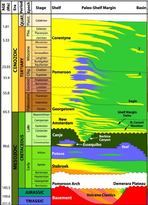 Fig. 4.A comprehensive stratigraphic column map of Suriname-Guyana basin
