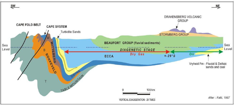 Figure 3. Schematic Cross-Section of Southern Karoo Basin and Ecca Group Shales