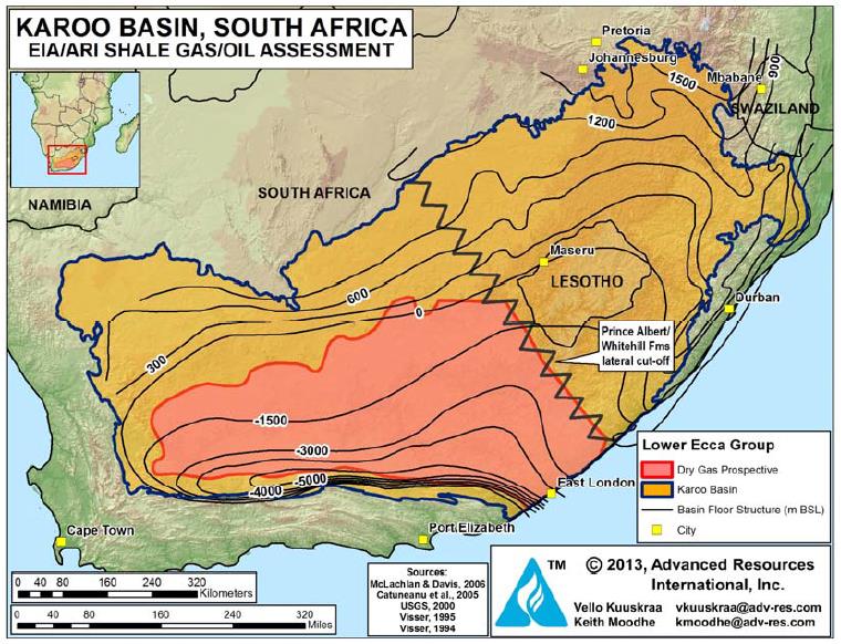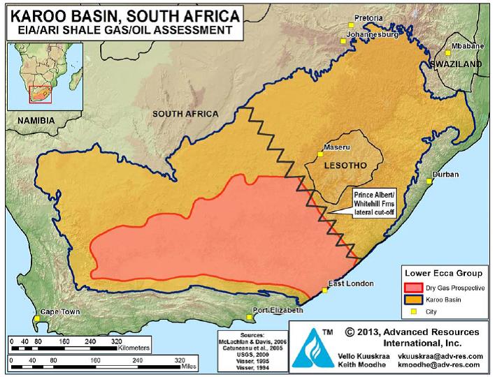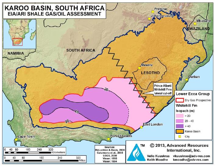 Data source:SOUTH AFRICA, Advanced Resources International. Vello Kuuskraa, Keith Moodhe, 2013