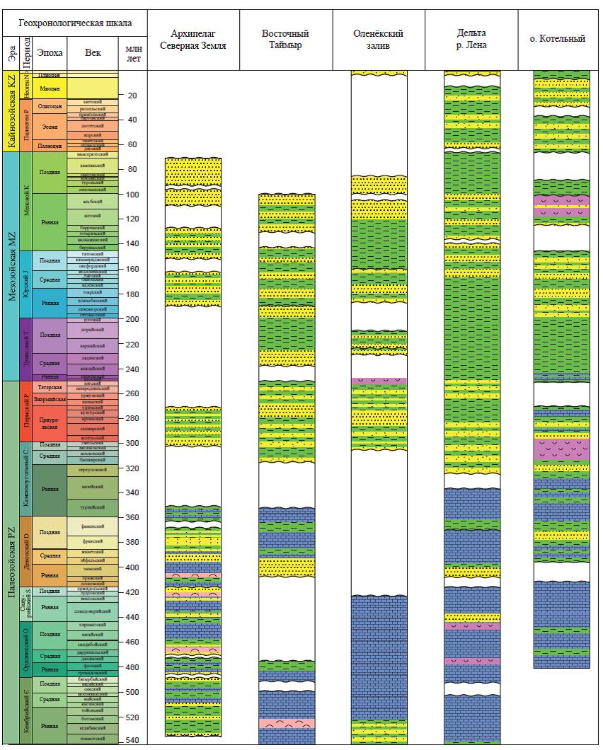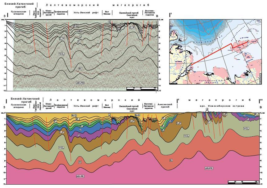 Рис. 2 Опорные разрезы, обрамляющие море Лаптевых