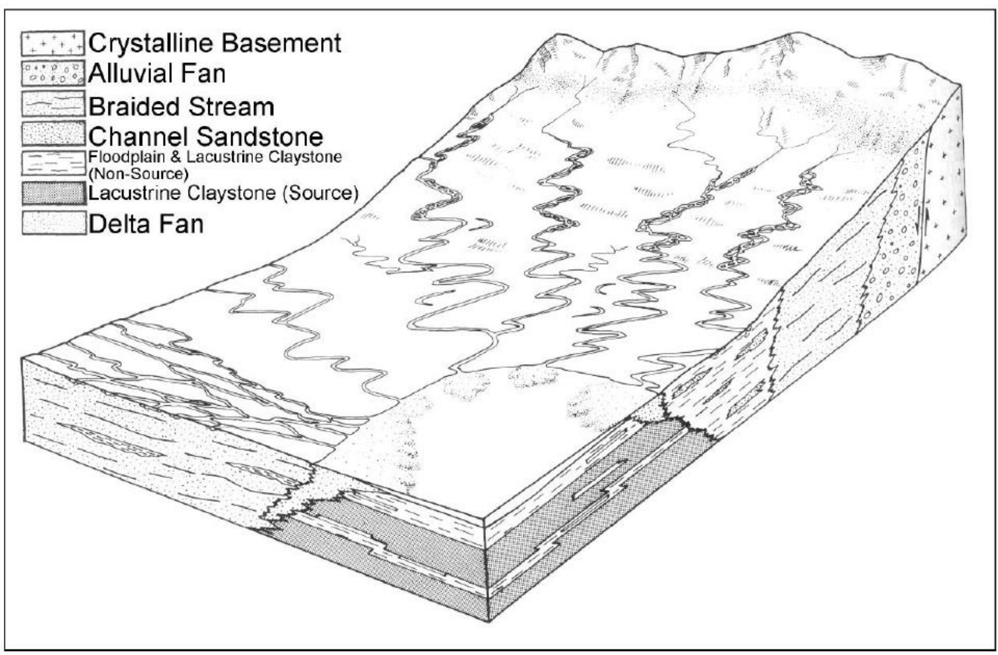 Figure 3 Generalized depositional model depicting the environments operative during the filling of the southern Sudan rift basin