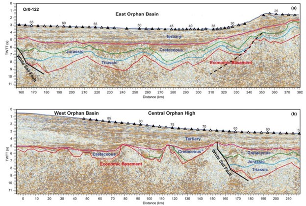 Data source:The Orphan Basin: A review of basin evolution, structure, stratigraphy and petroleum systems. Alexander L. Peace, Nikole Bingham-Koslowski, Tannis McCartney, J. Kim Welford. 2022