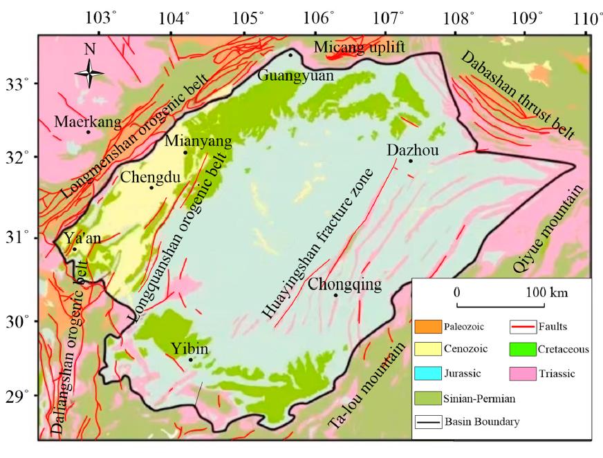 Figure 1. Regional geological map of the Sichuan Basin (modified from Zheng et al.).