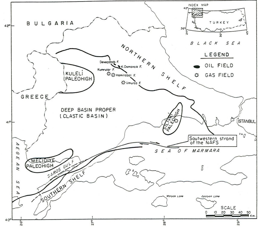 Data source: Evolution of the Thrace sedimentary basin and its hydrocarbon prospectivity Süleyman Turgut, Muharrem Türkarslan, and Doğan Perinçek. 1991