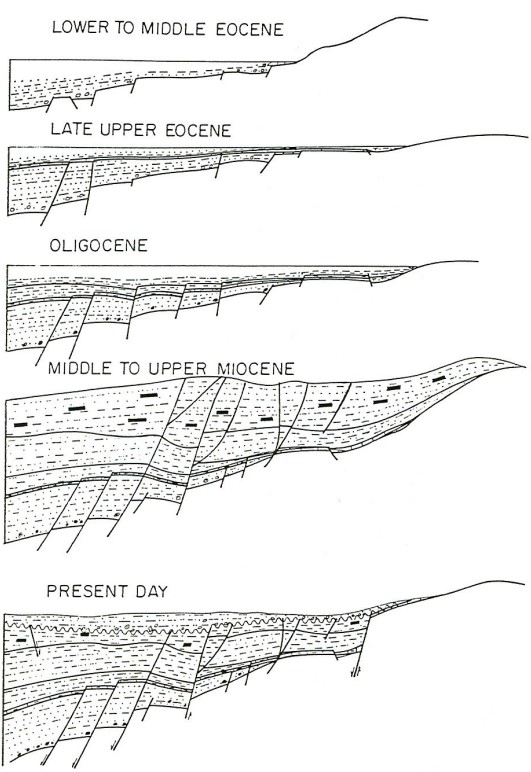 The rate of subsidence and deposition slowed in Oligocene times. Thich shallow-marine sand and shale sequences occur in the Lower and Middle Oligocene. The Lower Oligocene sequences are shale-dominated, and form the best source-rocks in the basin. The Middle Oligocene sequences are deltaic to near-shore deposits, and are sanddominated. These sands form the second main reservoir facies in the basin. The Middle Oligocene shales are quite rich in their total organic carbon content but they are usually immature. The Upper Oligocene series is mostly paralic to lacustrine and contains abundant lignite coal seams, but is immature.