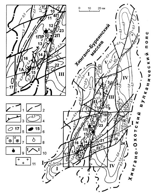 Рис. 1. Тектоническая схема Верхне-Буреинского НГБ: