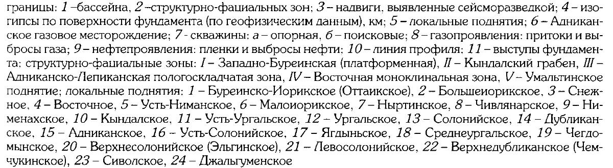 Тектоническое строение. Фундаментом Верхне-Буреинского бассейна служит древнее основание восточной окраины Хингано- Буреинского микроконтинента – метаморфические протерозойские и раннепалеозойские породы, прорванные палеозойскими гранитоидами. По геофизическим данным максимальная глубина залегания фундамента изменяется от 4 до 7 км. Осадочный чехол можно расчленить на три структурных этажа, разделенных перерывами инесогласиями: 1 - юрский морской и прибрежно-морской песчано-алевролитовый (умальтинская серия, эпиканская, эльгинская, чаганыйская свиты); 2 - верхнеюрско~нижнемеловой лагунный и континентальный терригенный уг леносный (талынжанская, ургальская, чегдомынская свиты); 3 –мел-кайнозойский прибрежно-морской и континентальный, преимущественно грубообломочный (иорекская, кындалская, цагаянская свиты и неоген~четвертичные отложения).