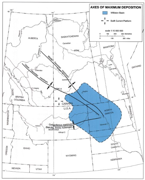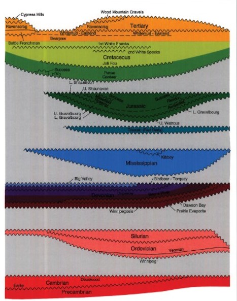 Data source: Chapter 27 - Geological History of the Williston Basin and Sweetgrass Arch. D.M. Kent - University of Regina, Regina J.E. Christopher.
