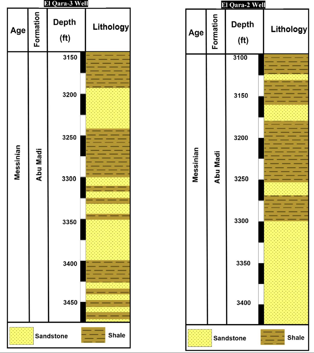 Data source: Assessing hydrocarbon prospects in Abu Madi formation using well logging data in El‑Qara feld, Nile Delta Basin, Egypt. Mohammad Abdelfattah Sarhan, 2021