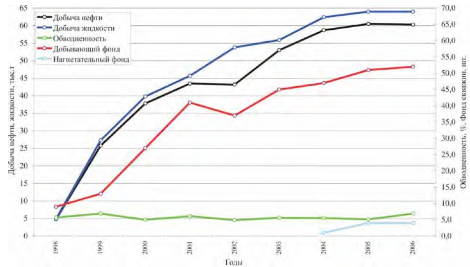 Рис. 5. Аделяковское месторождение. Динамика показателей разработки