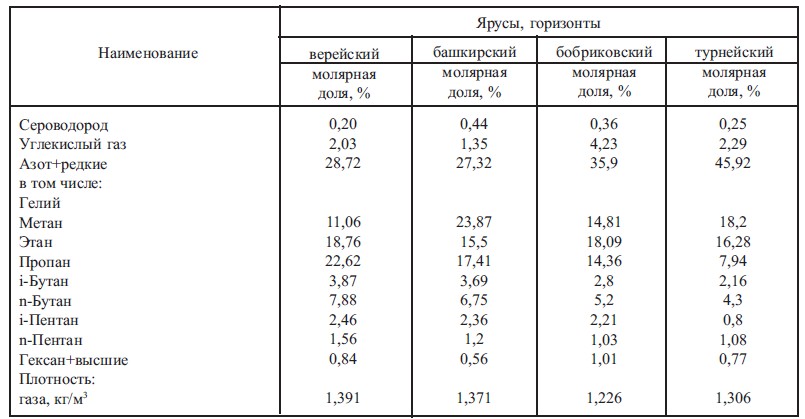 Табл.3. Характеристика попутных газов продуктивных отложений Аделяковского месторождения (однократное разгазирование; мольное содержание, %)