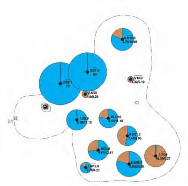 По состоянию на 01.01.2006 г. весь фонд составляет 15 скважин, в том числе эксплуатационных – 11, нагнетательных – 2, прочих – 2. Все добывающие скважины работают механизированным способом. В 2005 г. отбор нефти составил 17,732 тыс.т. Среднегодовая обводненность – 63,2%. Пластовое давление в зоне отбора в 2005 г. в среднем по объектам составило: по тульскому – 12,3 МПа, по бобриковскому – 12,6 МПа. Суммарный отбор жидкости на 01.01.2006 г. составил 110,113 тыс.т, в том числе нефти – 50,893 тыс.т (18,45% от НИЗ) и воды – 59,220 тыс.т. Для компенсации отбора жидкости закачано 51,617 тыс.м3 воды. Текущий коэффициент нефтеизвлечения достиг значения 0,053, водонефтяной фактор составил 1,16 д.ед. при средней обводненности 53,8%.