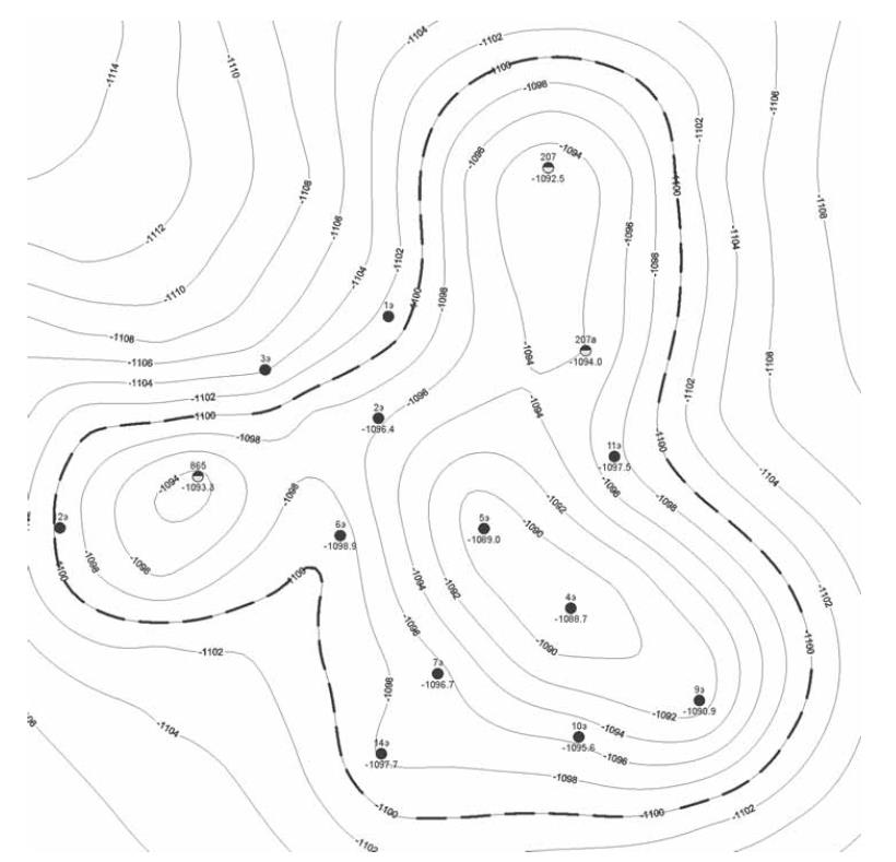 Рис. 1. Агбязовское месторождение. Выкопировка со структурной карты по кровле коллекторов бобриковского горизонта