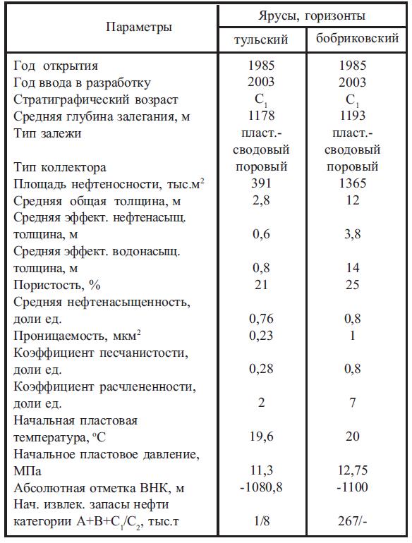 Таблица 1. Геолого-физические характеристики продуктивных отложений Агбязовского месторождения