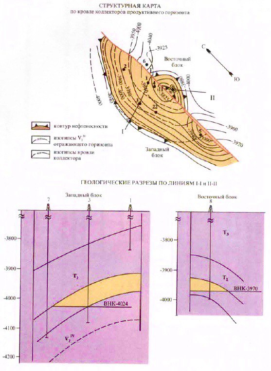 Продуктивность месторождения связана со среднетриасовыми отложениями. В пробуренной в приразломной зоне скважине 4 на глубине 3875 м вскрыт нефтяной горизонт общей толщиной 59,8 м . Коллекторами являются доломитизированные известняки с открытой пористостью до 17 %, эффективной толщиной 17,8 м, нефтенасыщенной - 9,6 м. Коэффициент нефтенасыщенности равен 0,74.