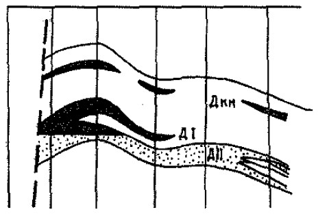 Одним из основных по запасам объектов являются песчаники горизонта ДI. Их мощность колеблется от 0 до 6,6 м, проницаемость в среднем равна 0,30 мкм2. В этих отложениях содержится 4 залежи нефти пластово-сводового типа, тектонически и литологически эранированных. Размеры залежей от l,4x0,8 до 4,5х2 км. Высота этажа нефтеносности до 19 м. Начальное пластовое давление около 20 МПа.