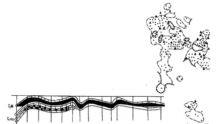 Рис.1 Карта контуров залежей ТТНК и турнейского яруса. Геологический профиль
