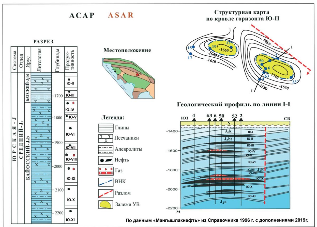 Газонефтяное месторождение Асар находится в Мангыстауской НГО и расположено в центральной части Жетыбай-Озенской ступени, рядом с месторождением Туркменой. В структурном отношении месторождение приурочено к брахиантиклинальной складке северо-западного простирания.