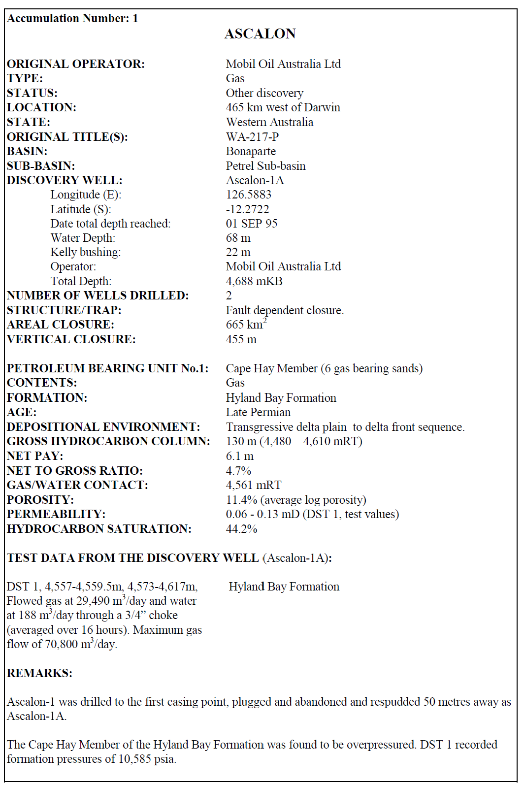 Data source: Cadman, S.J. and Temple, P.R., 2004. Bonaparte Basin, NT, WA, AC & JPDA, Australian Petroleum Accumulations Report 5, 2nd Edition, Geoscience Australia, Canberra.