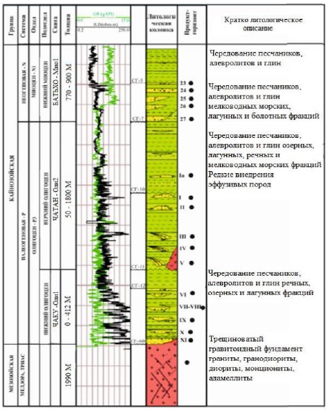 Рис. 2 ‒ Сводный литолого‒стратиграфический разрез месторождения «Белый Тигр»