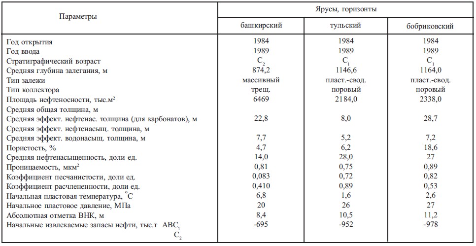 Табл. 1. Геолого-физические характеристики продуктивных отложений Биклянского месторождения