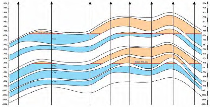 Рис.2. Биклянское месторождение. Схематический геологический профиль продуктивных отложений среднего карбона