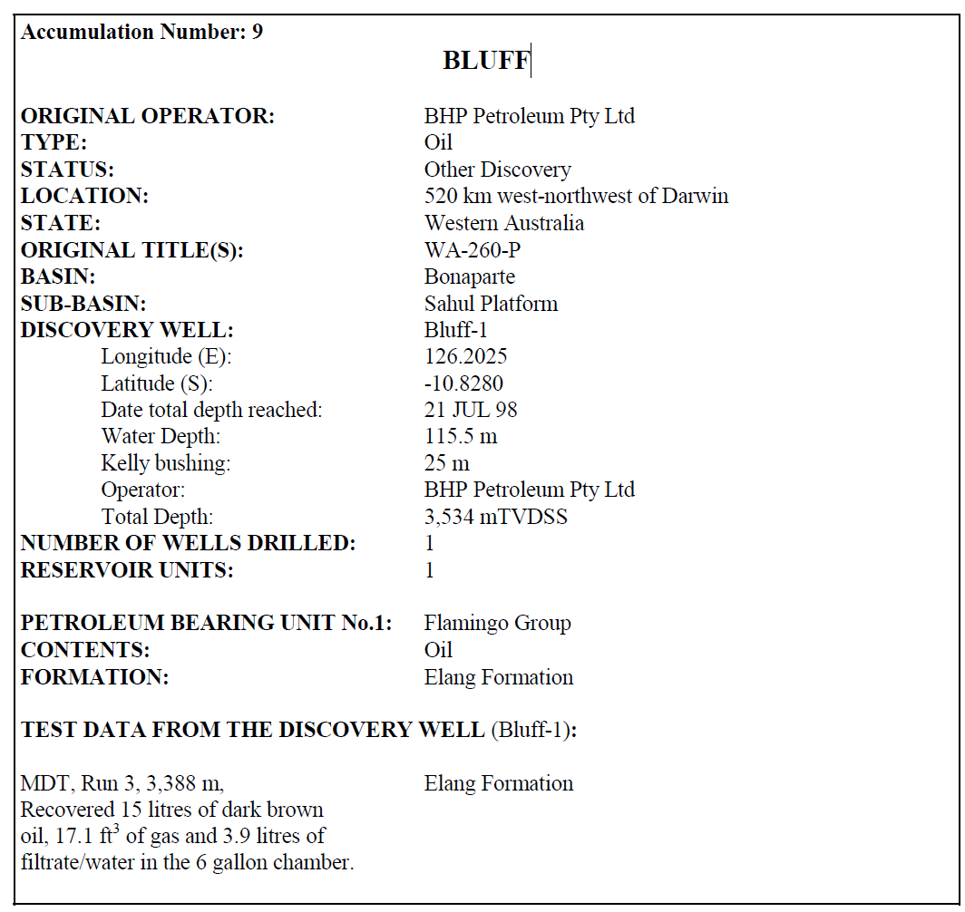 Data source: Cadman, S.J. and Temple, P.R., 2004. Bonaparte Basin, NT, WA, AC & JPDA, Australian Petroleum Accumulations Report 5, 2nd Edition, Geoscience Australia, Canberra.