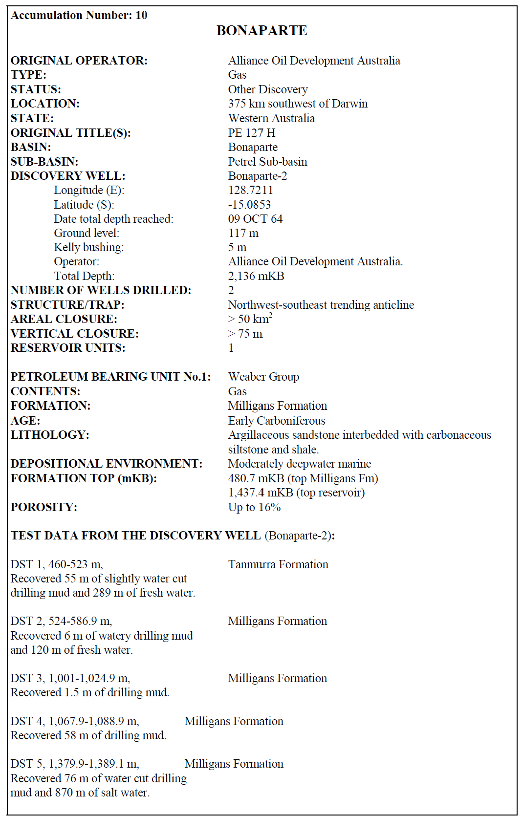 Data source: Cadman, S.J. and Temple, P.R., 2004. Bonaparte Basin, NT, WA, AC & JPDA, Australian Petroleum Accumulations Report 5, 2nd Edition, Geoscience Australia, Canberra.