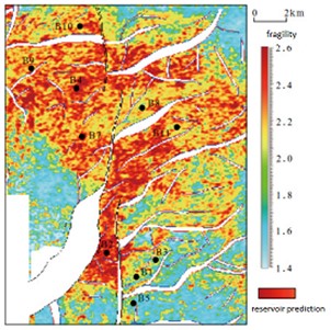 Fig. 3 Reservoir prediction map of weathered fracture zone-weathered fracture zone based on azimuth anisotropy