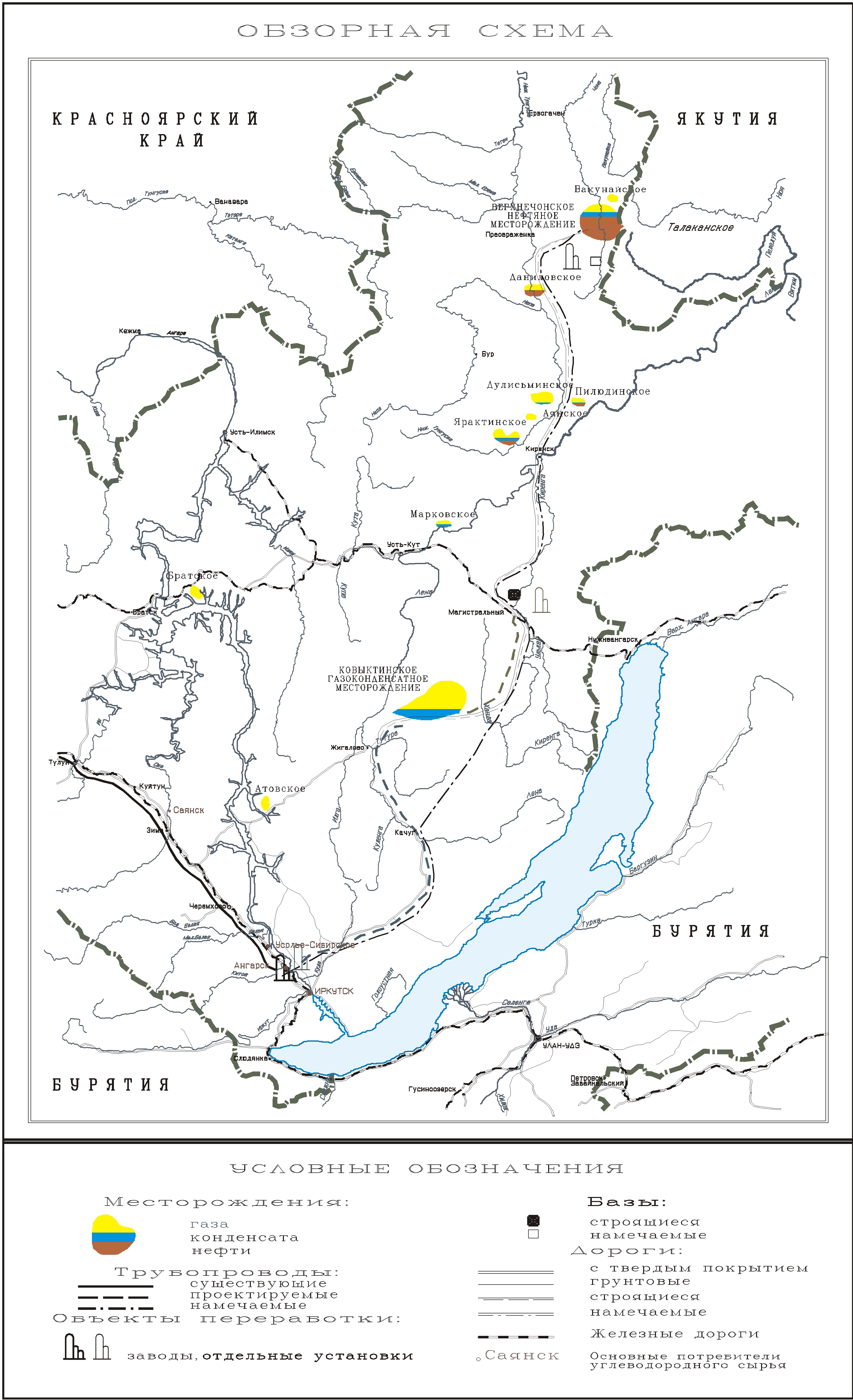 Ближайшие разрабатываемые нефтегазоконденсатные месторождения Марковское, Ярактинское, Дулисьминское находятся в 300 км северо-восточнее Братского ГКМ. В 240 км юго-восточнее находится уникальное Ковыктинское ГКМ.