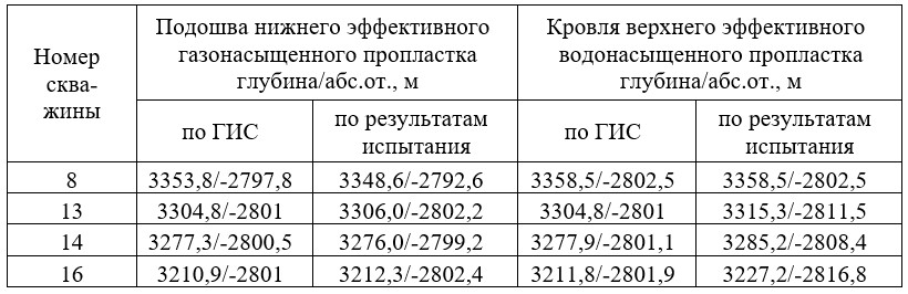 В таблице 1 даны предполагаемые границы ГВК по данным ГИС и нижние границы перфорации парфеновского горизонта по продуктивным скважинам.