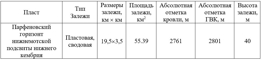 Табл.2 Краткая характеристика газоконденсатной залежи парфеновского горизонта