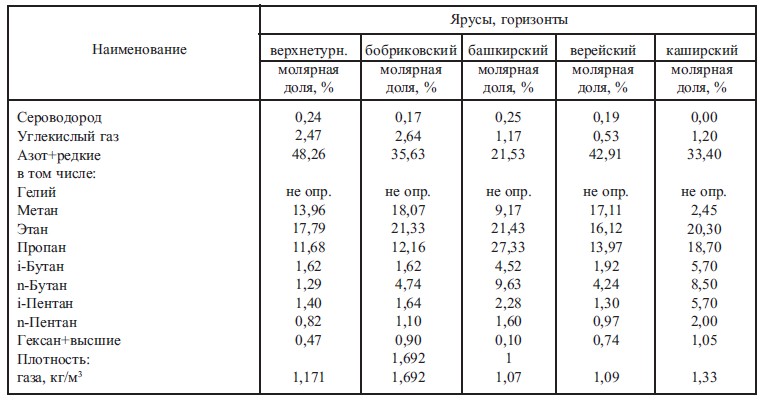 Табл.3. Характеристика попутных газов продуктивных отложений Бурейкинского месторождения (однократное разгазирование; мольное содержание, %)