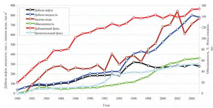 Рис.2. Бурейкинское месторождение. Динамика показателей разработки