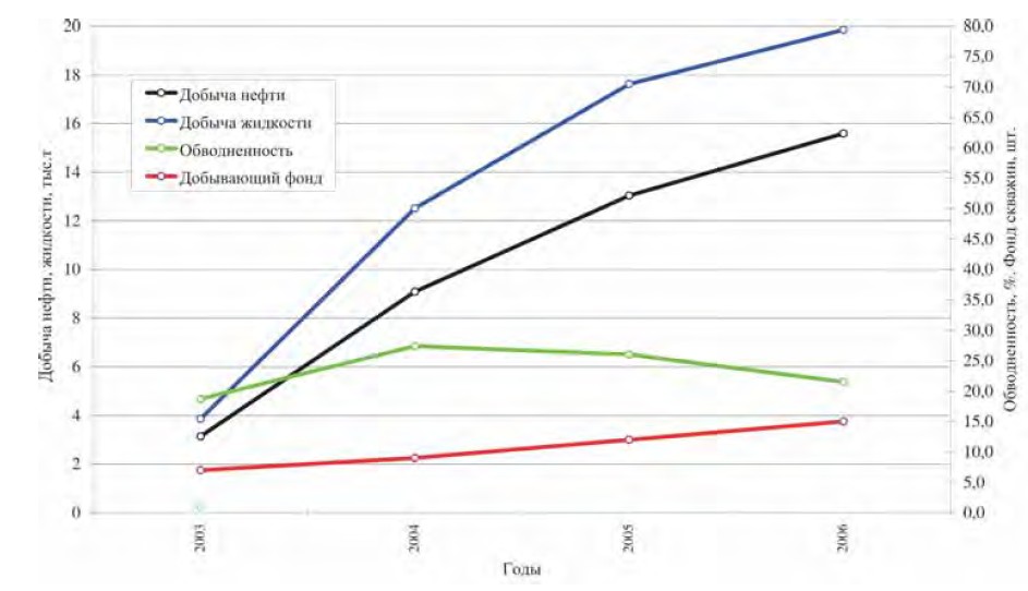 Рис.1. Бухараевское месторождение. Динамика показателей разработки