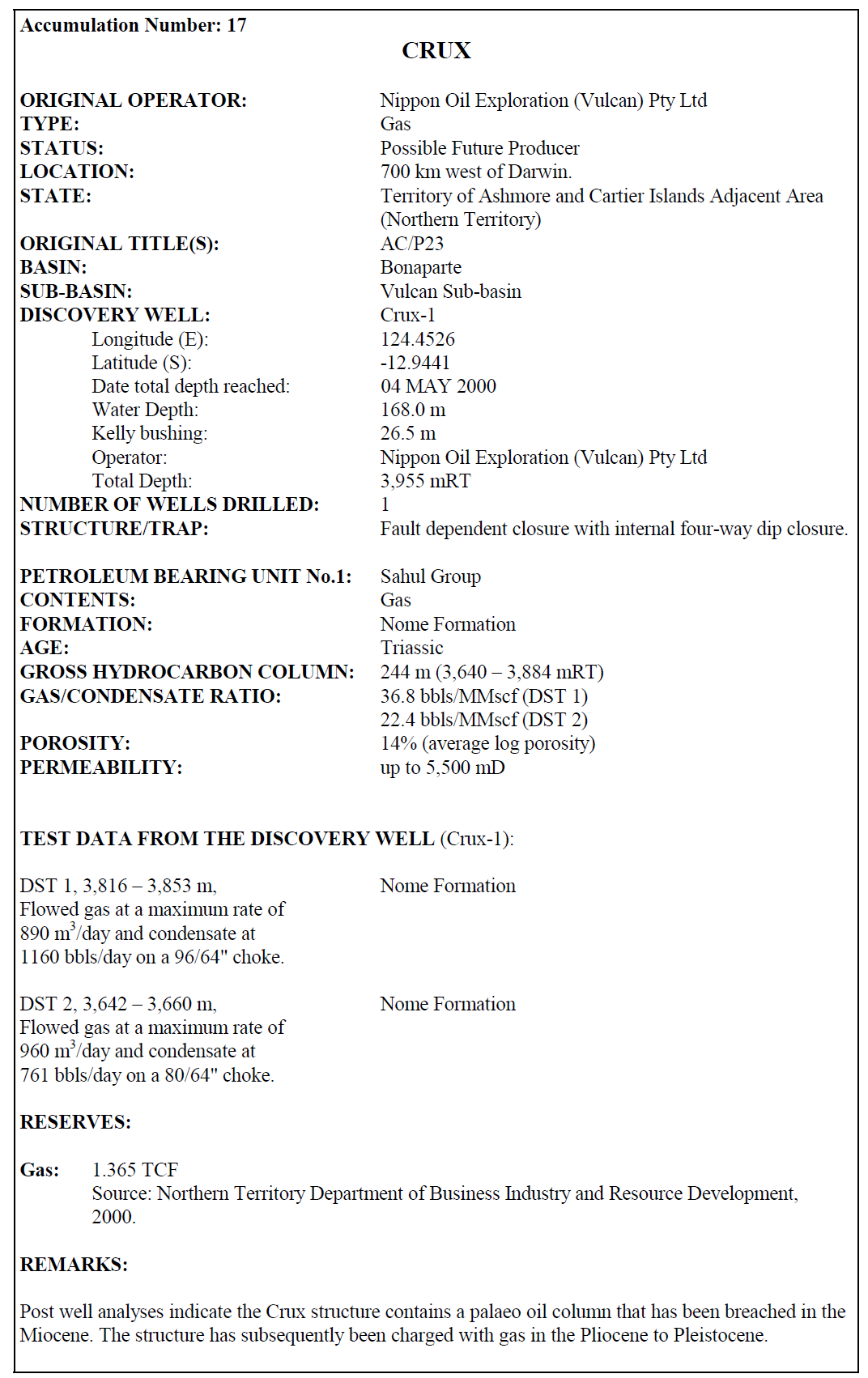 Data source: Cadman, S.J. and Temple, P.R., 2004. Bonaparte Basin, NT, WA, AC & JPDA, Australian Petroleum Accumulations Report 5, 2nd Edition, Geoscience Australia, Canberra.