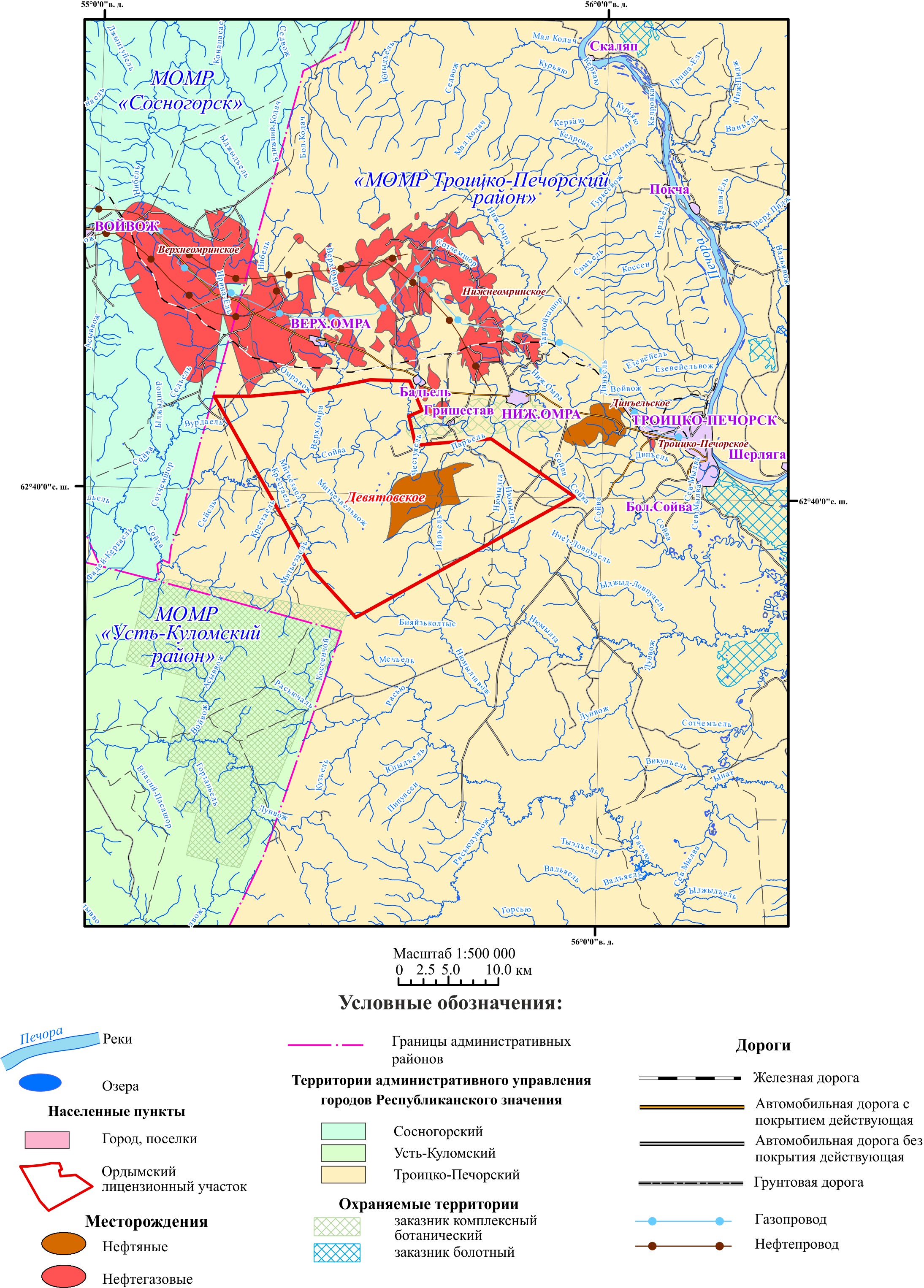 Девятовское нефтяное месторождение в административном отношении расположено в Троицко-Печорском районе Республики Коми, в 22 км к западу от районного центра пгт. Троицко-Печорска, расположенного на левом берегу р. Печоры – главной водной артерии Республики Коми (Рис. 1).